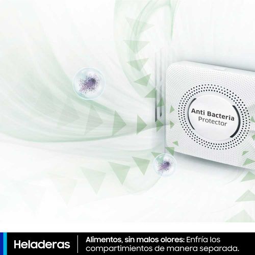 Una protección antibacteriana mantiene tu heladera Samsung 396Lts limpia e higiénica. El aire circula por un filtro de carbono activo, por lo que está constantemente esterilizado y desodorizado, mientras que un filtro antibacteriano elimina las bacterias.