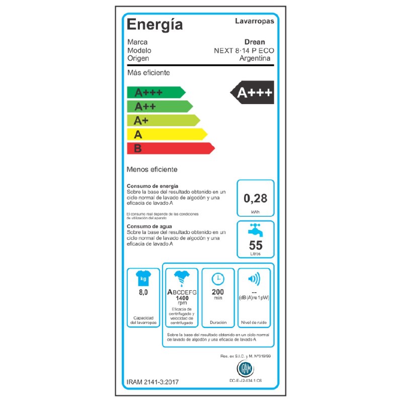 Lavarropas Carga Frontal 8 Kg 1400 Rpm Inverter Next 8.14 P Eco – DREAN - Leo Muebles - Electrodomésticos y muebles