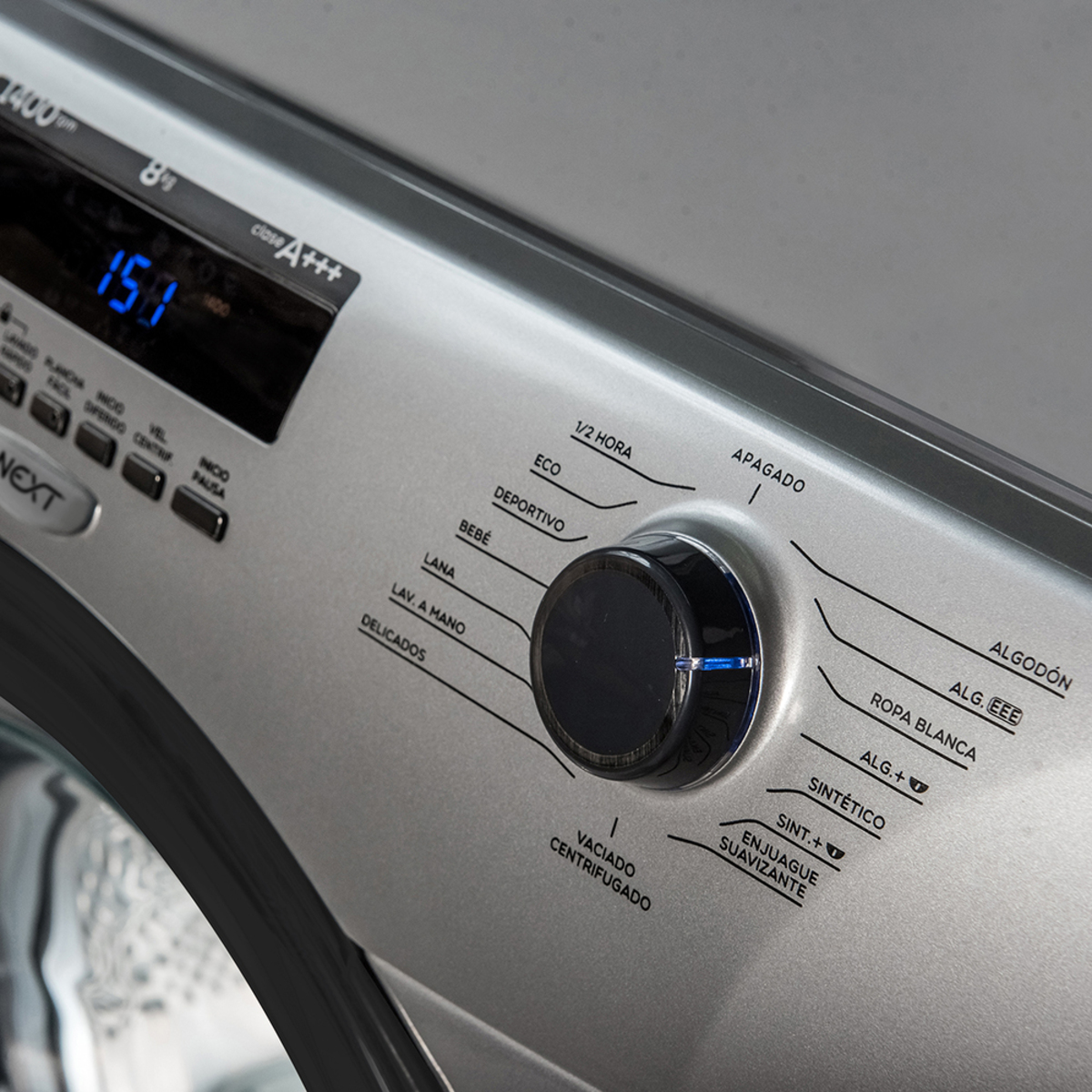 Lavarropas automático de Carga Frontal. Tecnología Inverter. Capacidad de 8 Kg. Color Gris. Hasta 1400 RPM. Eficiencia energética A+++. Sistema de lavado Europeo. Display LED y perilla bidireccional. Bloqueo para niños. Sistema Autobalance. Carga autoadaptativa. Lavado rápido 30’. Origen Argentina.