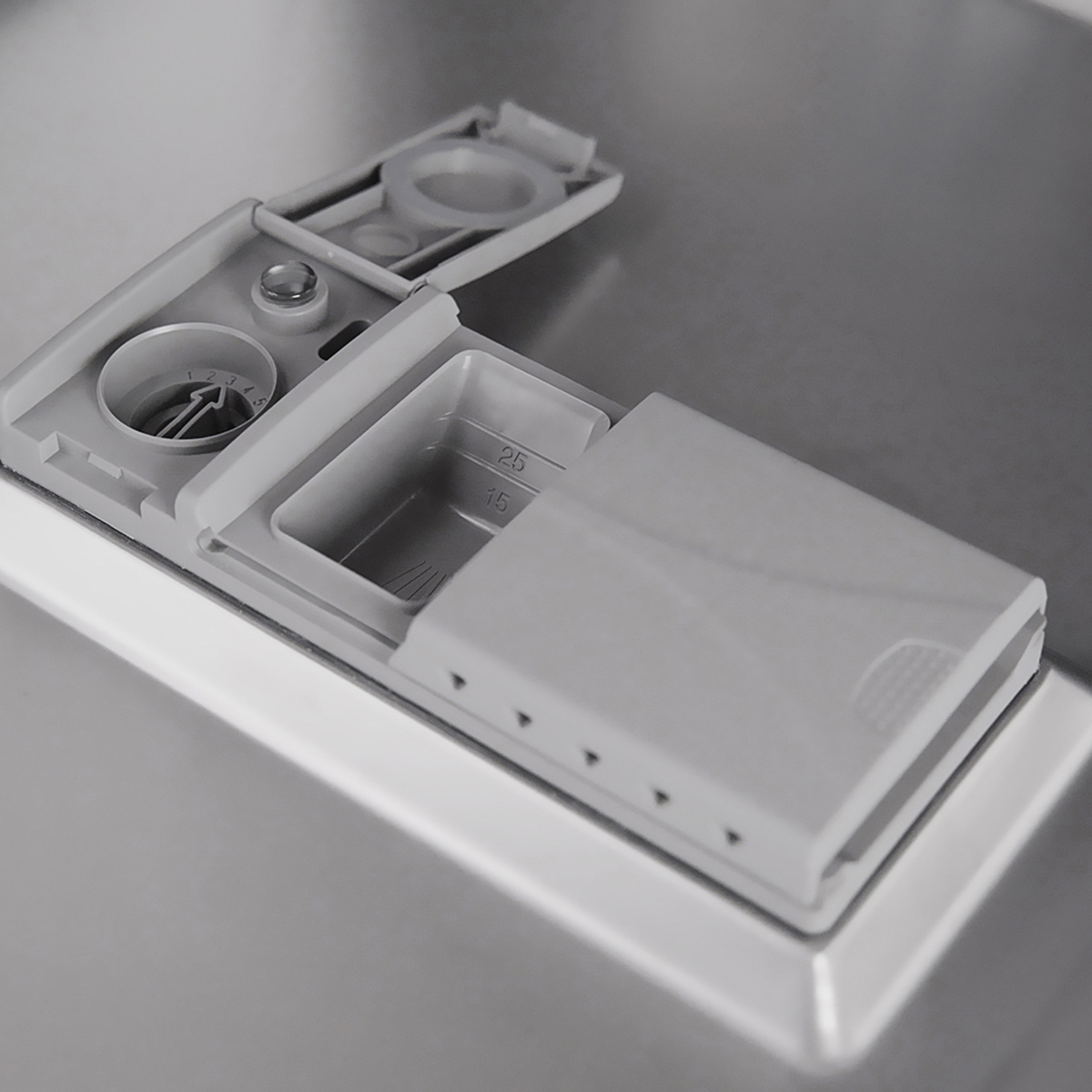 | Características | Indicador nivel de abrillantador Instalación a nivel o debajo de la encimera Temperatura máxima hasta 75°C Entrada de agua fría o caliente hasta 60°C |