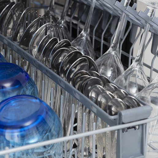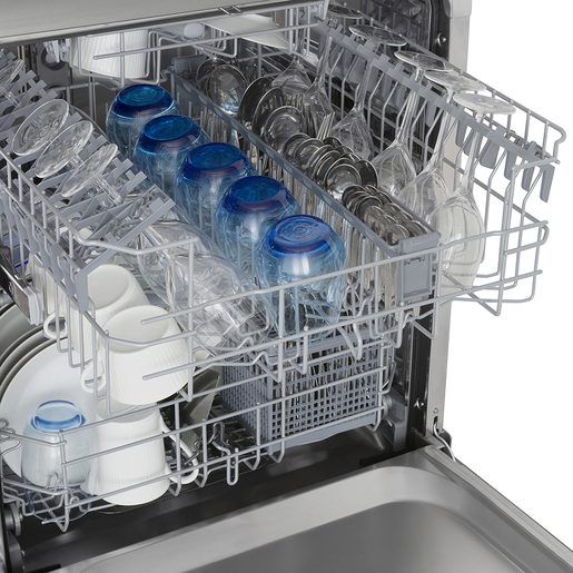 Tres cestos. Regulación del cesto superior en altura, adecuándose a la vajilla de gran tamaño. Canasta especial para cubiertos, y una tercer bandeja adicional para utensilios pequeños.