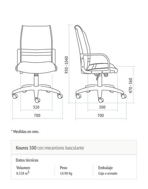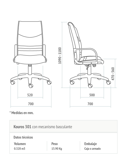 - Opcionales: Estructura trineo con apoyabrazos, en color negro (acabado texturado). Base cromada.