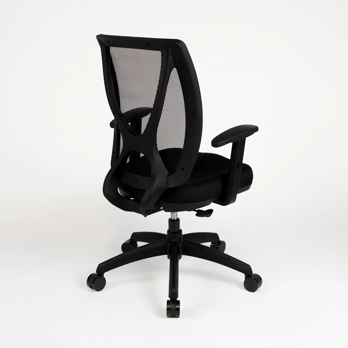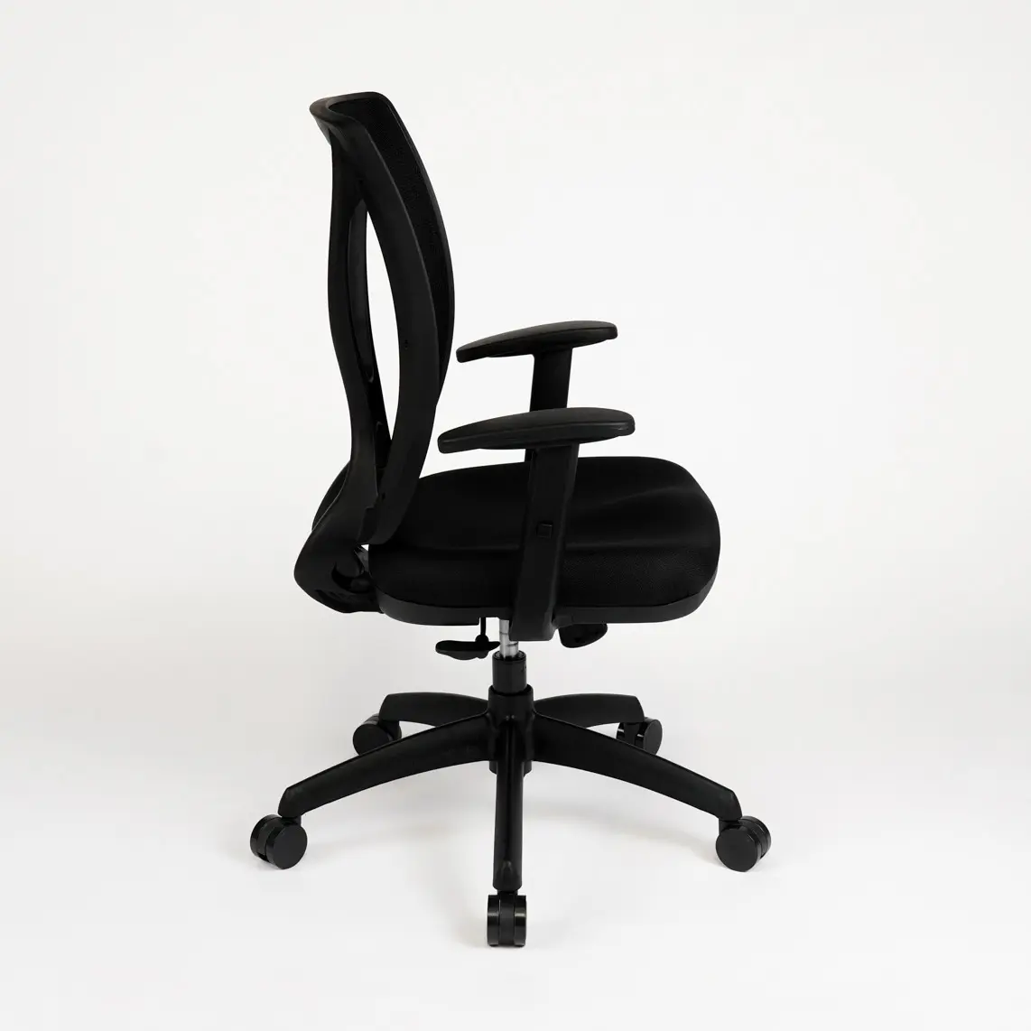 - Respaldo tapizado en tela de red color: Azul, gris perla, naranja, negro, visón, rojo, verde, petróleo.